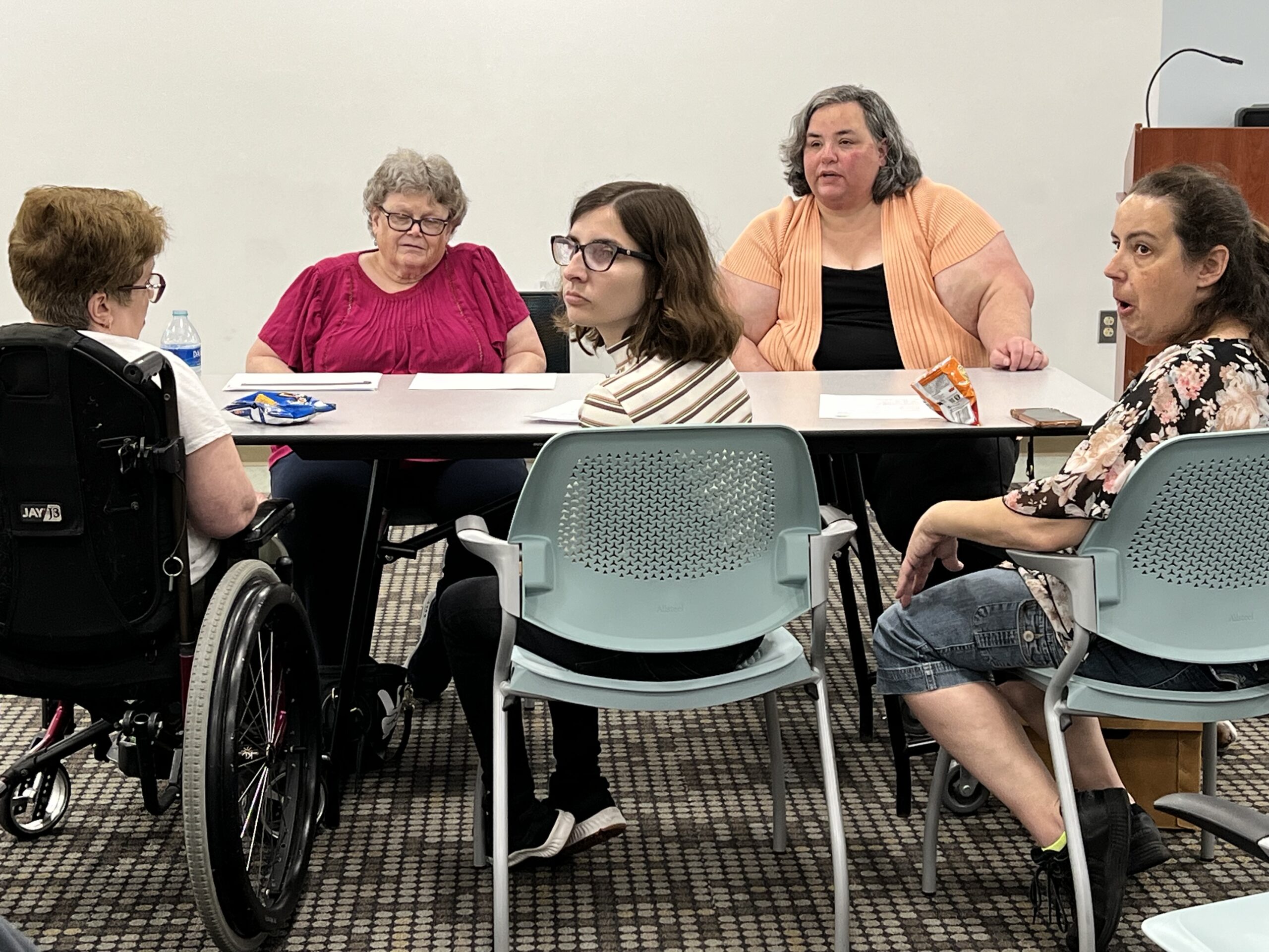 In the same meeting, Beth Pinkham, from OSCIL, Ocean State Center for Independent LIving, reviewed their five core services: Advocacy, Independent living skills, information and referrals, peer support, transition services (youth and nursing home). The comprehensive handout provided a detailed listing of services and programs provided as well as skills taught.