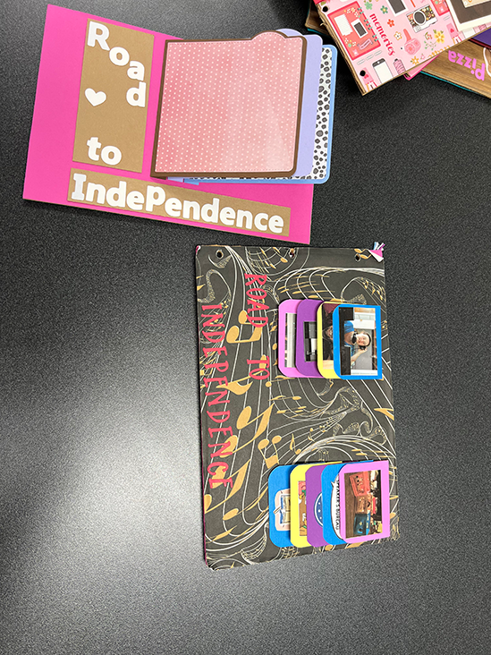 To help participants along their personal “Road to Independence,” as depicted on everyone’s cover page, the contents of the portfolio might include a pocket containing their prescriptions as well as photos of family and friends, favorite hobbies, and activities they would like to help them stay healthy, such as walking. Combined, this offers insight to those who are charged with designing plans or providing care, especially for those unable to speak for themselves.