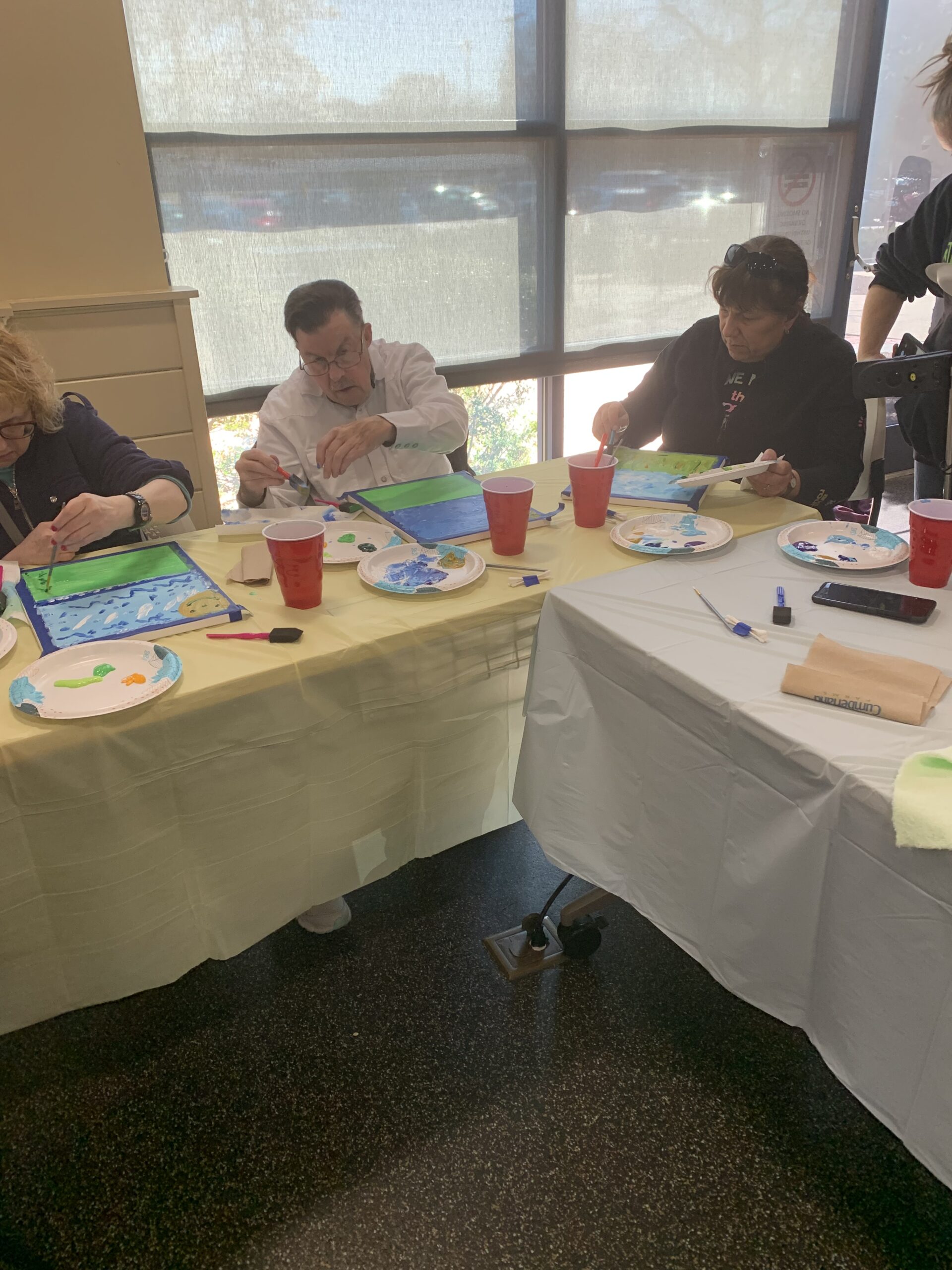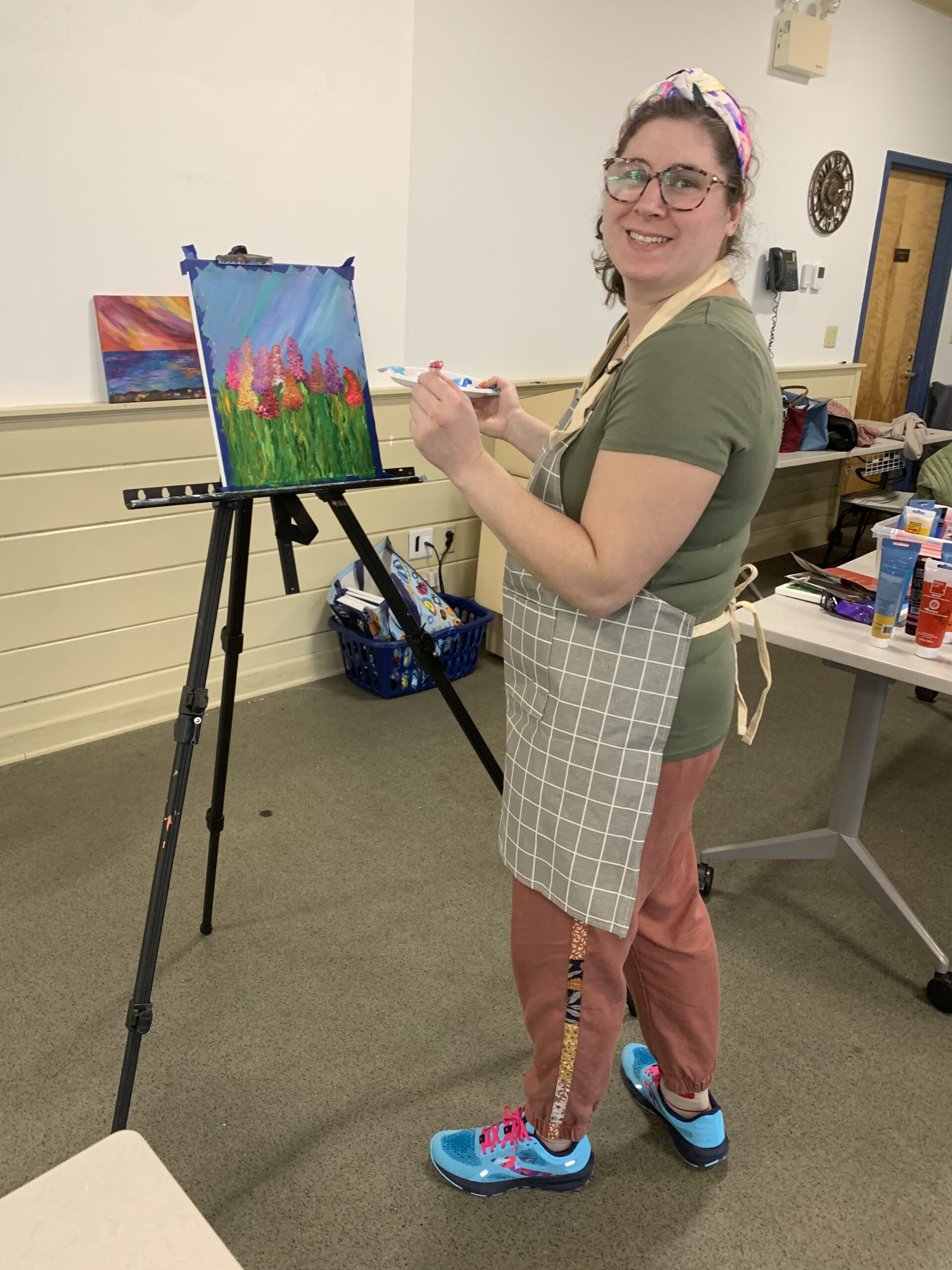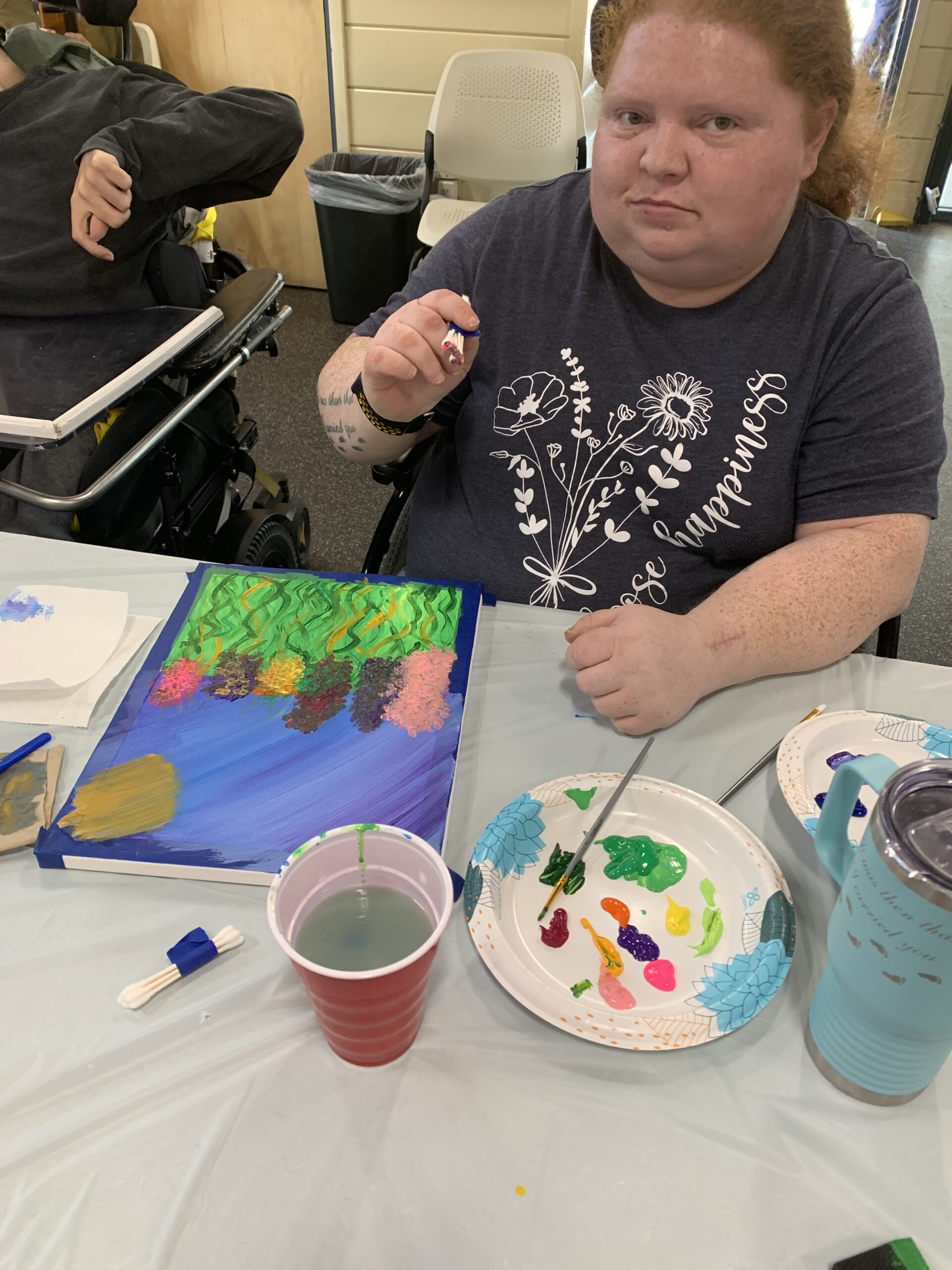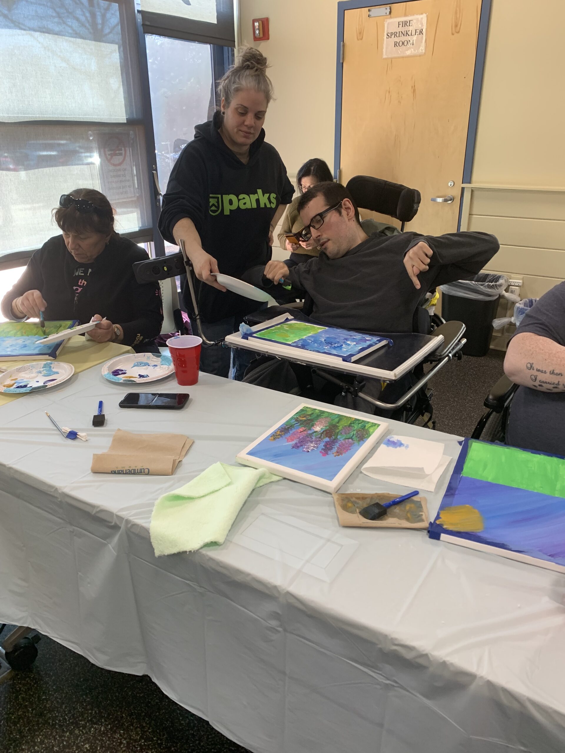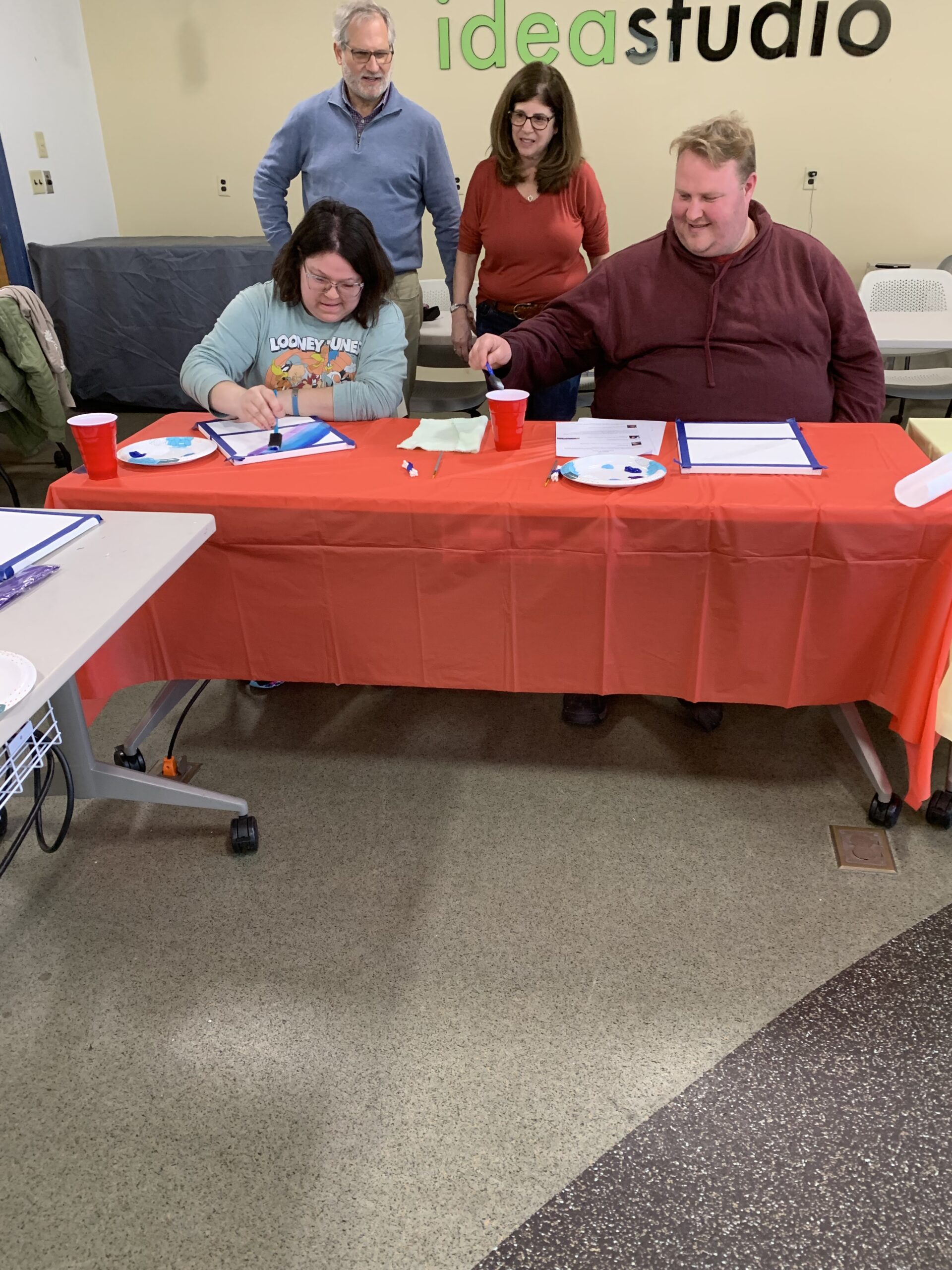 Rachel Rasnick, a local small business owner, artist, and RIDDC Self-Employment Project participant, taught at a recent RI CDC Meeting on April 3rd at the Warwick Public Library in the Idea Studio. The 11 participants enjoyed their time while being instructed by Rachel to create beautiful paintings of flowers.