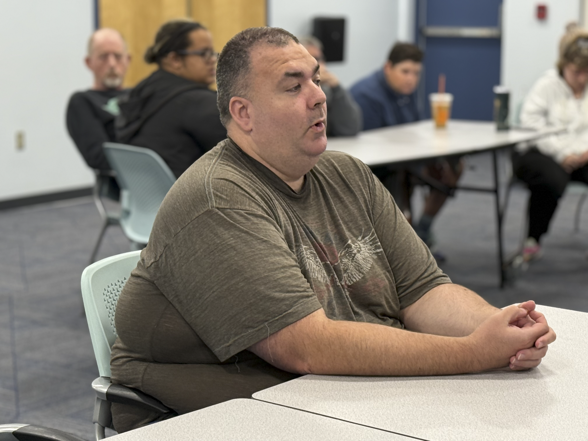 To break the ice, Deanne and Rachel asked how many in the room were currently employed. Hands went up quickly. Amy, president of Ava Voice, proudly shared that she works as a sales associate at Ocean State Job Lot. Another participant works in medical manufacturing, helping to make defibrillators. Tom described his towel rotation and laundry business, which helps reduce paper towel use. Another participant mentioned her love of baking.