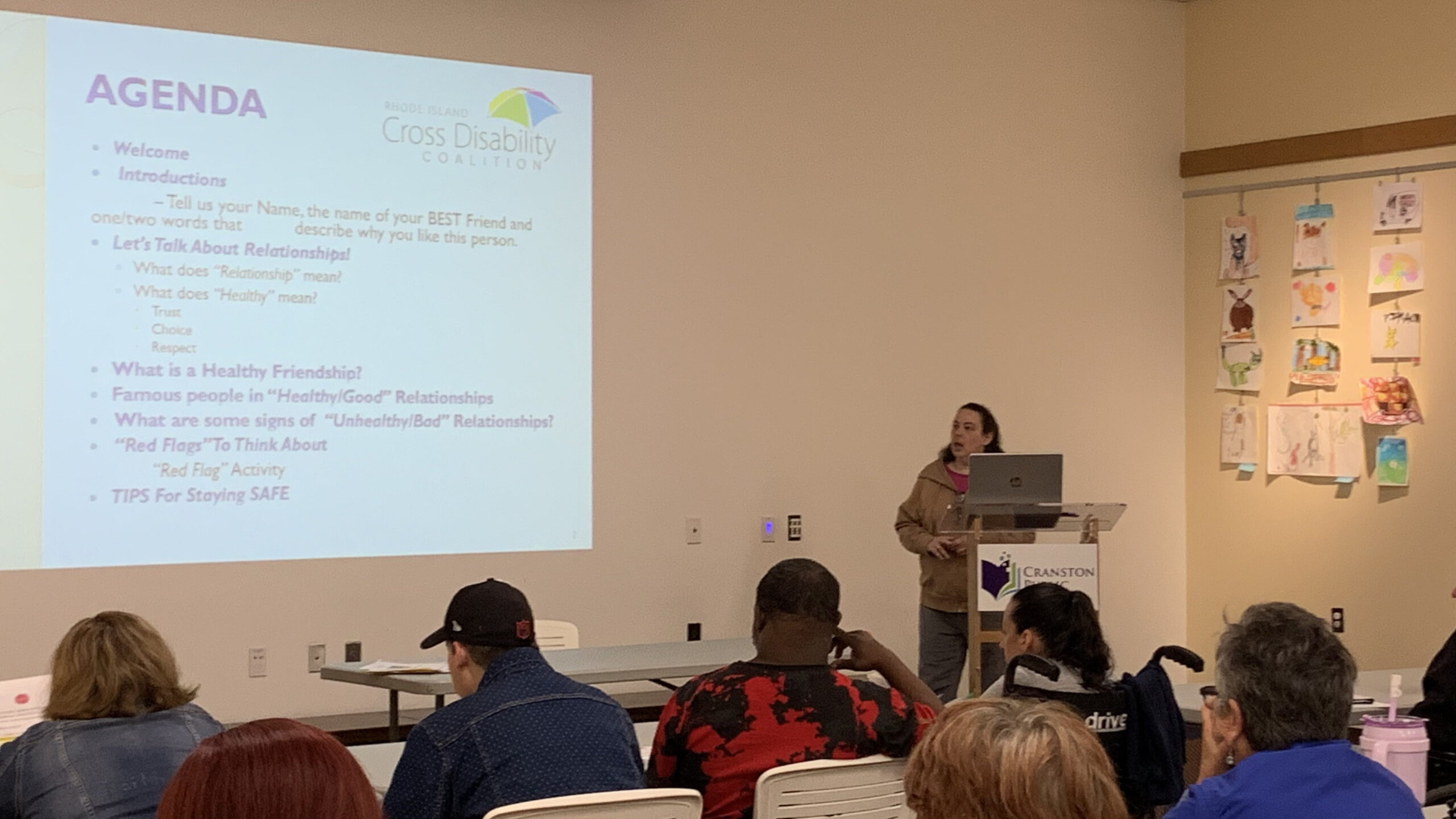 More than 25 attendees from AVA Voice, including staff, were actively participating in the Speaker’s Bureau’s “Healthy Relationships” presentation, between 4:30 – 6pm on May 20, 2025 at the Cranston Public Library/James Giles room.
