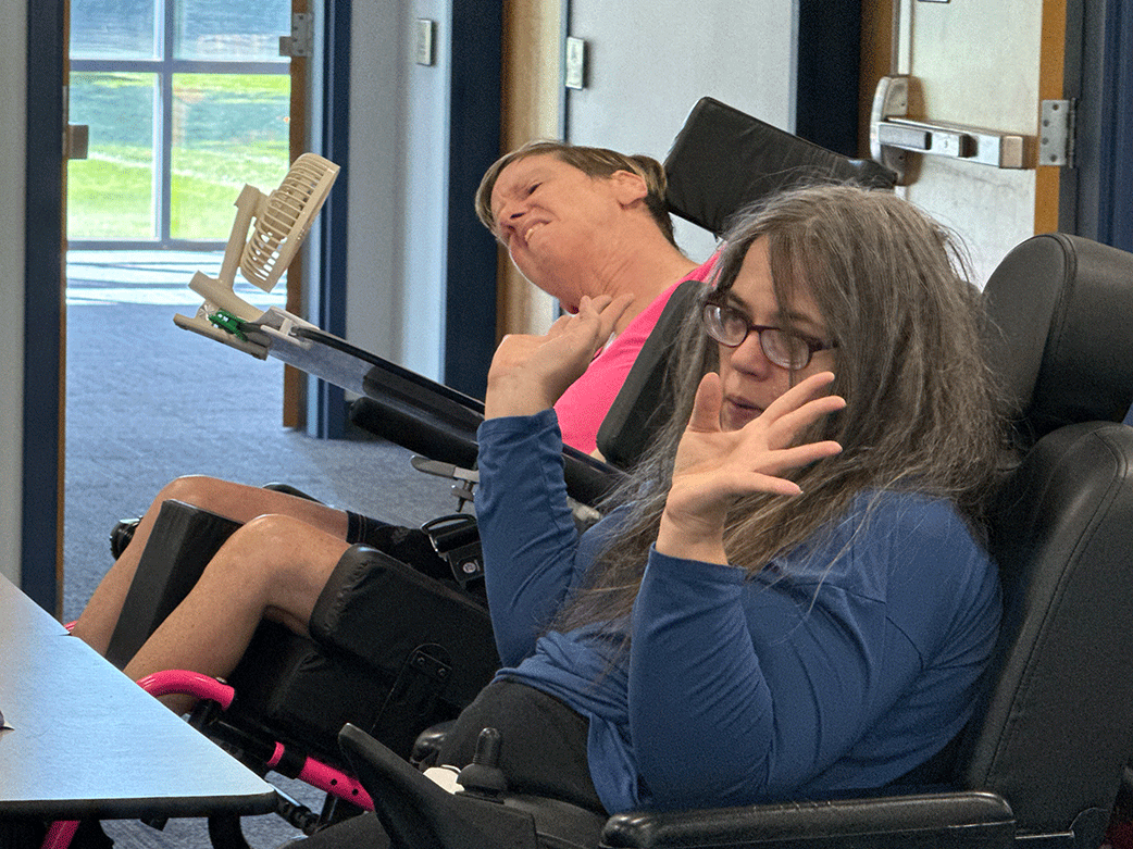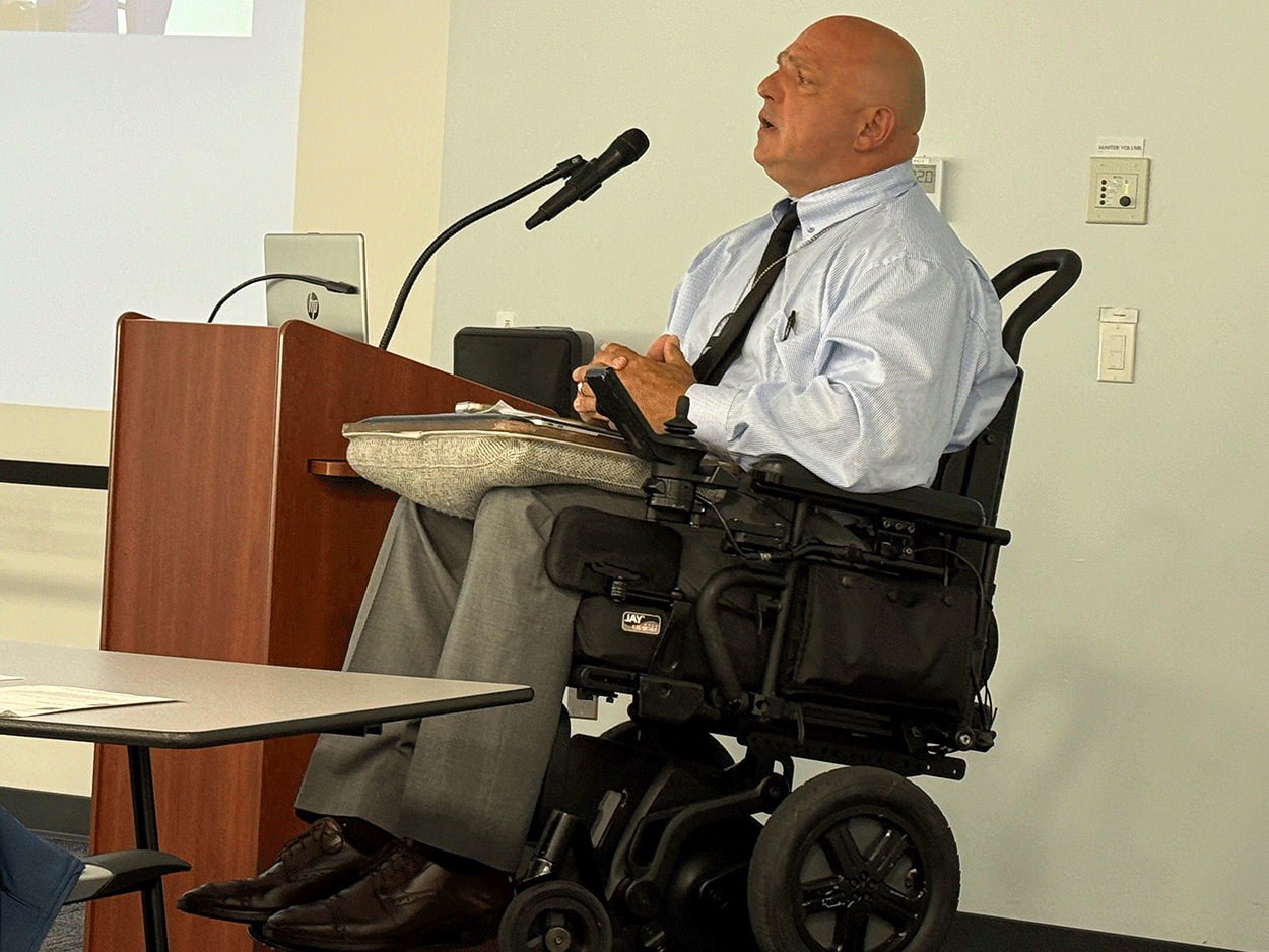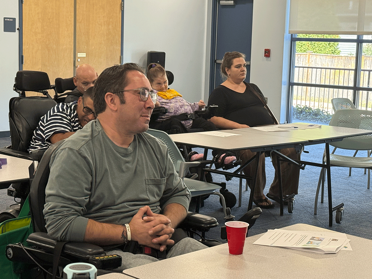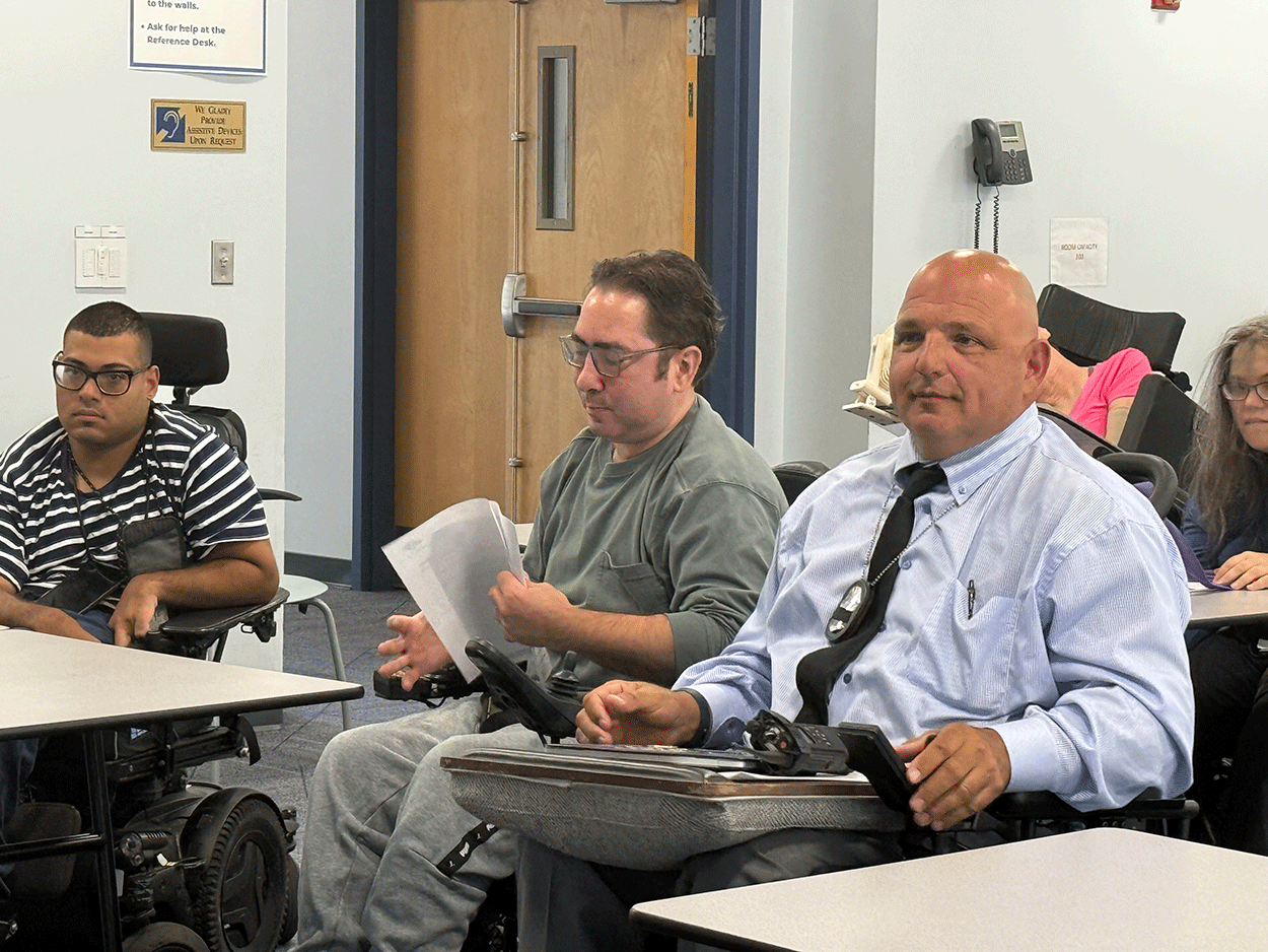 This month’s featured presentation focused on Self-Defense and Internet Safety, led by Officer Mike Matracia, a former Providence Police officer with 35 years of experience, now living with MS and serving on RIDDC boards, and Christina Battista, Cross Disability Coalition founder and current staff member. Together, they guided the group through a PowerPoint presentation that was both practical and interactive, sparking personal stories and lively discussion throughout the afternoon.