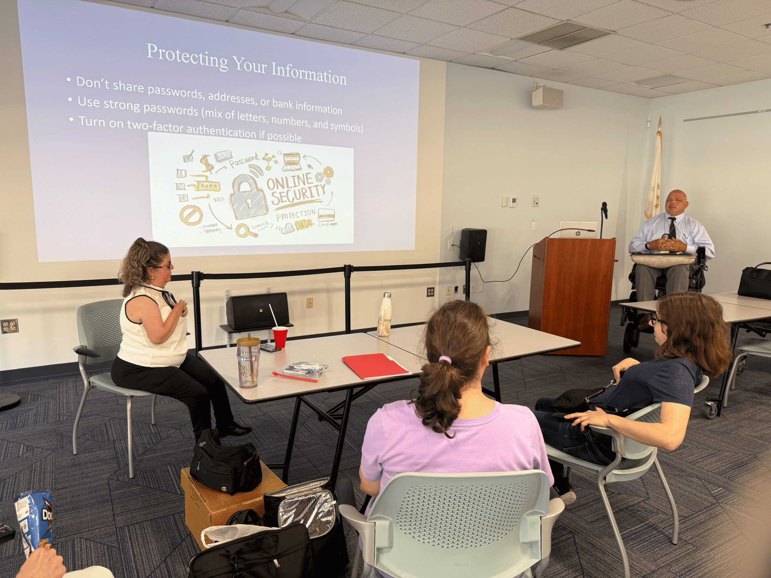 The conversation then turned to online safety, where nearly everyone had a story to share. Topics included recognizing scams and phishing attempts, managing cyberbullying and harassment, and avoiding sharing personal information. The presentation’s key takeaways: